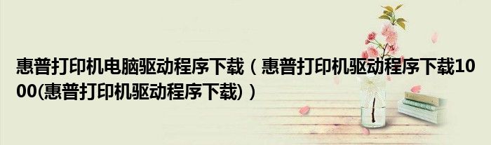 1.①下载一个驱动人生;②安装后快捷方式到桌面;③连上打印机,打开驱动人生软件,它会帮你检测到打印机、帮你去找打、下载、安装HP1000的驱动程序;④如果你允许,它还会帮你备份、必要时帮你还原。