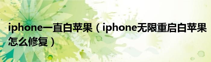 1,iPhone无限重启白苹果怎么修复 :1、在白苹果的时候,按住开关+home键,黑屏就放手,再按POWER开机,等一下,这时候还是白苹果,然后按音量加和减,可以两个点一下,然后两个一起长按,注意,还是白苹果的,然后再次按住开关+home键,黑屏就放手,再按POWER开机,这次进去不要再按音量加和减,以上没有出错的话,应该就能正常开机了,本人亲测,再次重启完全没问题 试了三、四次了,有时重启会白,这个时候按住电源+home,黑屏了就放手,然后再正常开机就行了 之后我连续重启,都能正常启动了 2、白了的话,电源和home一起按,等黑屏了,立马按住电源和音量键上,看到白苹果后再等屏幕黑掉,最后按电源键或者连上数据线(数据线接上电脑)再次看到启动的白苹果后,就能进系统了,然后进去之后卸载最后一次安装的cydia插件,再重启就不会白了