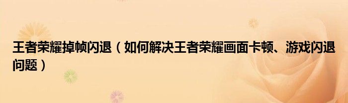 大家好,今天小悦来为大家解答以上问题。王者荣耀掉帧闪退,如何解决王者荣耀画面卡顿、游戏闪退问题很多人还不知道,现在让我们一起来看看吧!