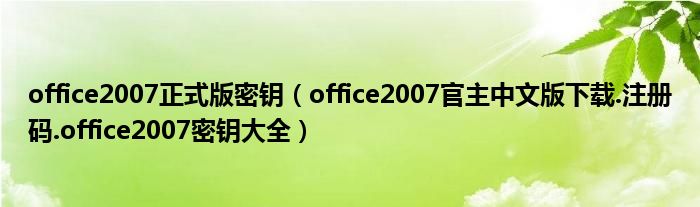 大家好,今天小悦来为大家解答以上问题。office2007正式版密钥,office2007官主中文版下载.注册码.office2007密钥大全很多人还不知道,现在让我们一起来看看吧!