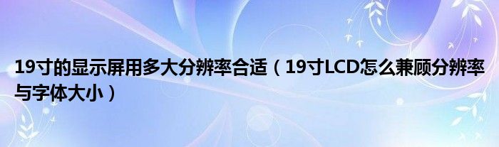 大家好,今天小悦来为大家解答以上问题。19寸的显示屏用多大分辨率合适,19寸LCD怎么兼顾分辨率与字体大小很多人还不知道,现在让我们一起来看看吧!