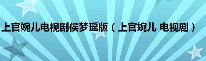 上官婉儿电视剧侯梦瑶版(上官婉儿 电视剧)