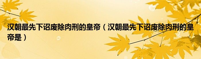 汉朝最先下诏废除肉刑的皇帝,汉朝最先下诏废除肉刑的皇帝是这个很多人还不知道,小飞来为大家解答以上的问题。现在让我们一起来看看吧!