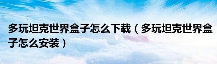 多玩坦克世界盒子怎么下载(多玩坦克世界盒子怎么安装)