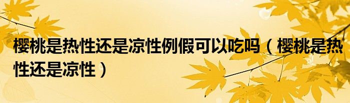 樱桃是热性还是凉性例假可以吃吗,樱桃是热性还是凉性这个很多人还不知道,小飞来为大家解答以上的问题。现在让我们一起来看看吧!