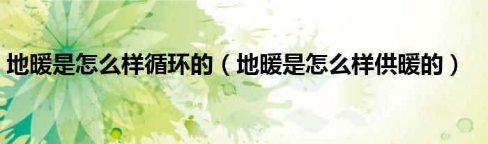 地暖是怎么样循环的(地暖是怎么样供暖的)