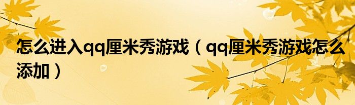 怎么进入qq厘米秀游戏(qq厘米秀游戏怎么添加)