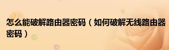 大家好,慧慧来为大家解答以上问题,怎么能破解路由器密码,如何破解无线路由器密码很多人还不知道,现在让我们一起来看看吧!