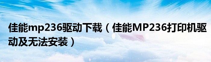 1,佳能MP236打印机驱动 无法安装 :如果是安装过程中报错的话 可以检查 打印机连接线 和 IP地址的设置还可以下载最新驱动重新安装