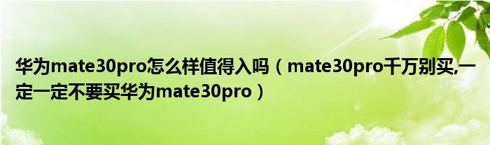 大家好,小常来为大家解答以上问题。华为mate30pro怎么样值得入吗,mate30pro千万别买,一定一定不要买华为mate30pro很多人还不知道,现在让我们一起来看看吧!