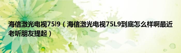 大家好,小常来为大家解答以上问题。海信激光电视75l9,海信激光电视75L9到底怎么样啊最近老听朋友提起很多人还不知道,现在让我们一起来看看吧!