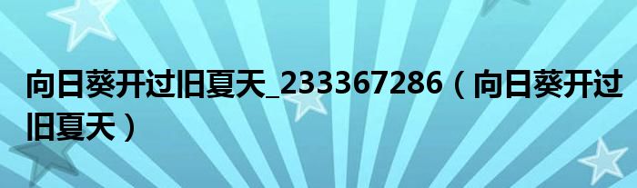 大家好,慧慧来为大家解答以上问题,向日葵开过旧夏天_233367286,向日葵开过旧夏天很多人还不知道,现在让我们一起来看看吧!