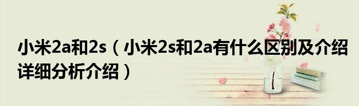 1,小米2s和2a有什么区别 介绍详细分析介绍 :1、外观上也就是屏幕大小的不同,都是白色直板;小米2s较小米2a更加省电,续航能力稍强一点儿;2、2S搭载高通骁龙600 四核1.7GHz处理器,性能较2a提升25%,不论是一般的应用运行、网页浏览还是大型游戏运行、高清视频观看,体验会更加极致。3、2s 32GB至尊版更采用索尼Exmor RS系列感光元件,相机由2a的800万像素提升到1300万像素,因而成像质量比小米2a更加优秀。还有一些小细节的不同:2s的扬声器设计在摄像头的左边,而2a的扬声器却设计在了机身的左边的底部,另外米2a背部的LOGO也被抹除了。