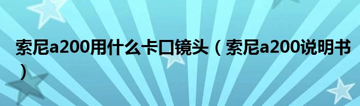大家好,慧慧来为大家解答以上问题,索尼a200用什么卡口镜头,索尼a200说明书很多人还不知道,现在让我们一起来看看吧!