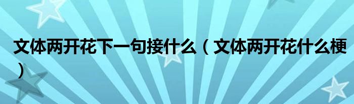 大家好,慧慧来为大家解答以上问题,文体两开花下一句接什么,文体两开花什么梗很多人还不知道,现在让我们一起来看看吧!