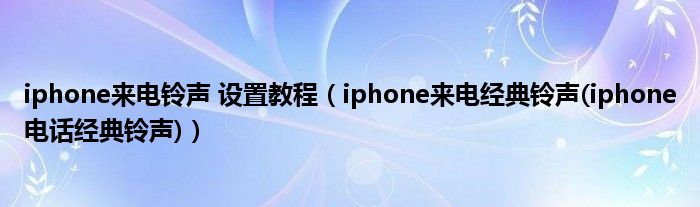 大家好,小常来为大家解答以上问题。iphone来电铃声 设置教程,iphone来电经典铃声(iphone电话经典铃声)很多人还不知道,现在让我们一起来看看吧!