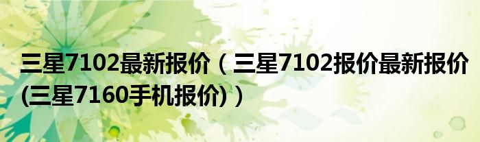 大家好,小常来为大家解答以上问题。三星7102最新报价,三星7102报价最新报价(三星7160手机报价)很多人还不知道,现在让我们一起来看看吧!