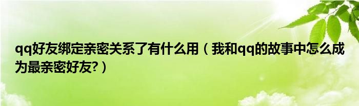 qq好友绑定亲密关系了有什么用(我和qq的故事中怎么成为最亲密好友?)