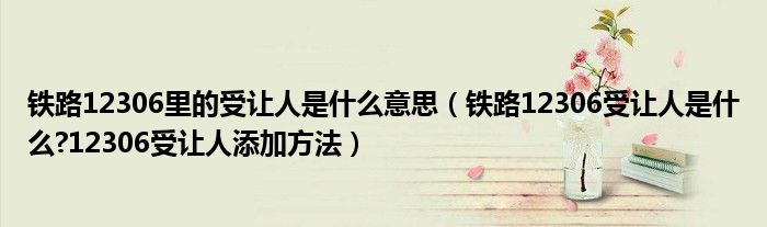 大家好,今天小悦来为大家解答以上问题。铁路12306里的受让人是什么意思,铁路12306受让人是什么?12306受让人添加方法很多人还不知道,现在让我们一起来看看吧!