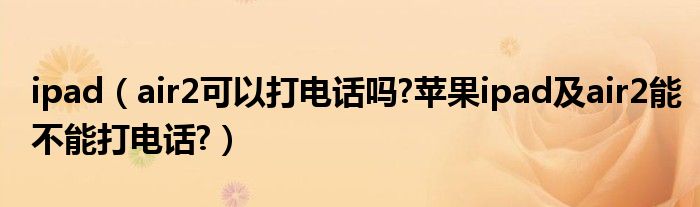 大家好,今天小悦来为大家解答以上问题。ipad,air2可以打电话吗?苹果ipad及air2能不能打电话?很多人还不知道,现在让我们一起来看看吧!
