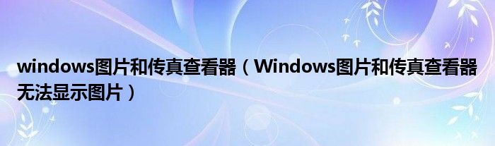 大家好,今天小悦来为大家解答以上问题。windows图片和传真查看器,Windows图片和传真查看器无法显示图片很多人还不知道,现在让我们一起来看看吧!