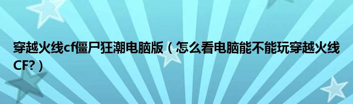 CF有最低配置要求,对比下自己电脑的配置就可以判断出是否能玩穿越火线了,CF最低配置可以到官网查询或者网上搜索一下,由于游戏客户端经常更新,不同时期最低配置也会不同的,最好到官网查询下。