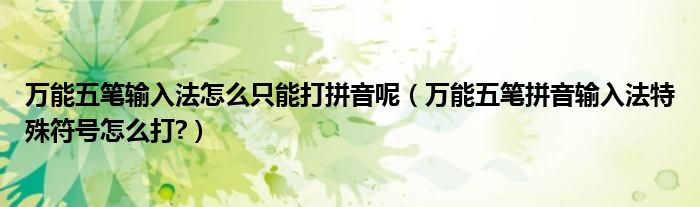 大家好,今天小悦来为大家解答以上问题。万能五笔输入法怎么只能打拼音呢,万能五笔拼音输入法特殊符号怎么打?很多人还不知道,现在让我们一起来看看吧!