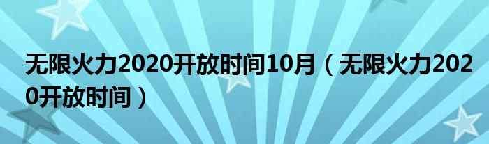 大家好,慧慧来为大家解答以上问题,无限火力2020开放时间10月,无限火力2020开放时间很多人还不知道,现在让我们一起来看看吧!