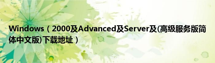大家好,今天小悦来为大家解答以上问题。Windows,2000及Advanced及Server及(高级服务版简体中文版)下载地址很多人还不知道,现在让我们一起来看看吧!