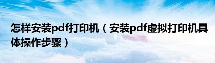 大家好,今天小悦来为大家解答以上问题。怎样安装pdf打印机,安装pdf虚拟打印机具体操作步骤很多人还不知道,现在让我们一起来看看吧!
