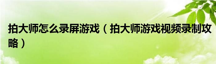 大家好,今天小悦来为大家解答以上问题。拍大师怎么录屏游戏,拍大师游戏视频录制攻略很多人还不知道,现在让我们一起来看看吧!