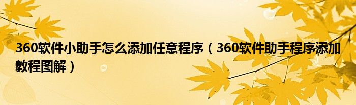 大家好,今天小悦来为大家解答以上问题。360软件小助手怎么添加任意程序,360软件助手程序添加教程图解很多人还不知道,现在让我们一起来看看吧!
