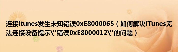 大家好,今天小悦来为大家解答以上问题。连接itunes发生未知错误0xE8000065,如何解决iTunes无法连接设备提示"错误0xE8000012"的问题很多人还不知道,现在让我们一起来看看吧!