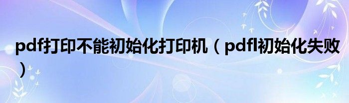 大家好,慧慧来为大家解答以上问题,pdf打印不能初始化打印机,pdfl初始化失败很多人还不知道,现在让我们一起来看看吧!