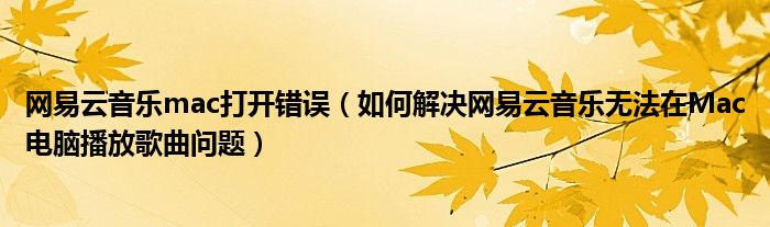 大家好,今天小悦来为大家解答以上问题。网易云音乐mac打开错误,如何解决网易云音乐无法在Mac电脑播放歌曲问题很多人还不知道,现在让我们一起来看看吧!