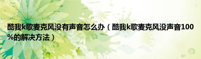 大家好,今天小悦来为大家解答以上问题。酷我k歌麦克风没有声音怎么办,酷我k歌麦克风没声音100%的解决方法很多人还不知道,现在让我们一起来看看吧!