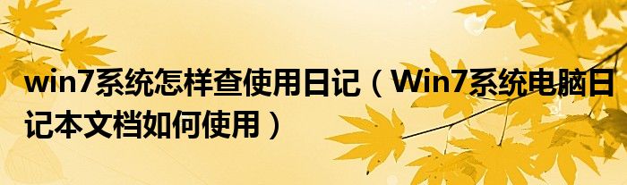 大家好,今天小悦来为大家解答以上问题。win7系统怎样查使用日记,Win7系统电脑日记本文档如何使用很多人还不知道,现在让我们一起来看看吧!