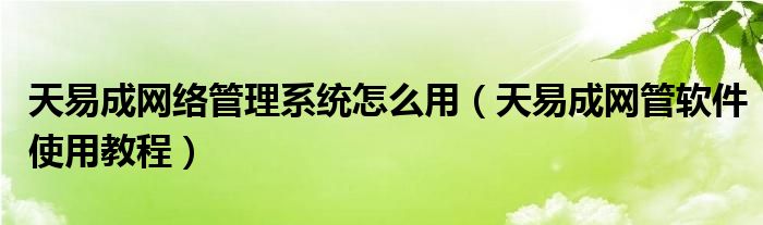 大家好,今天小悦来为大家解答以上问题。天易成网络管理系统怎么用,天易成网管软件使用教程很多人还不知道,现在让我们一起来看看吧!