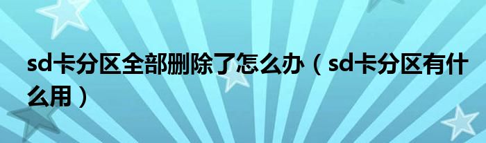 大家好,慧慧来为大家解答以上问题,sd卡分区全部删除了怎么办,sd卡分区有什么用很多人还不知道,现在让我们一起来看看吧!