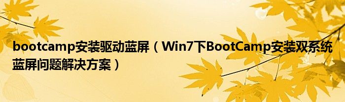 大家好,今天小悦来为大家解答以上问题。bootcamp安装驱动蓝屏,Win7下BootCamp安装双系统蓝屏问题解决方案很多人还不知道,现在让我们一起来看看吧!