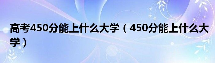 关于高考450分能上什么大学,450分能上什么大学这个很多人还不知道,今天菲菲来为大家解答以上的问题,现在让我们一起来看看吧!