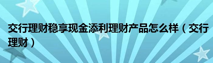 关于交行理财稳享现金添利理财产品怎么样,交行理财这个很多人还不知道,今天菲菲来为大家解答以上的问题,现在让我们一起来看看吧!
