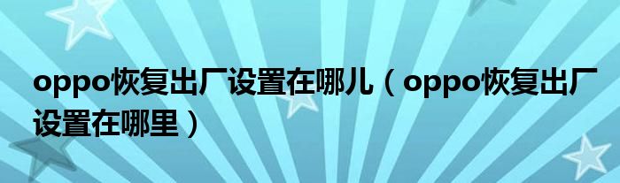 大家好,小晋来为大家解答以下问题,关于oppo恢复出厂设置在哪儿,oppo恢复出厂设置在哪里很多人还不知道,今天让我们一起来看看吧!