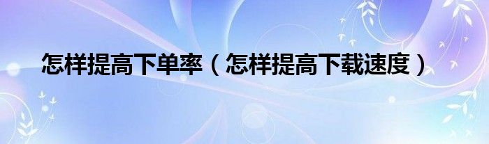 大家好,慧慧来为大家解答以上问题,怎样提高下单率,怎样提高下载速度很多人还不知道,现在让我们一起来看看吧!