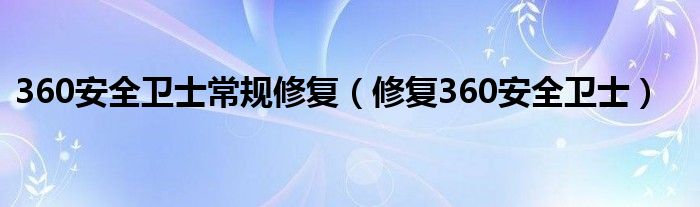 大家好,慧慧来为大家解答以上问题,360安全卫士常规修复,修复360安全卫士很多人还不知道,现在让我们一起来看看吧!