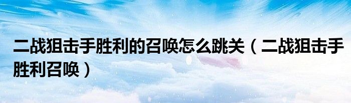 大家好,慧慧来为大家解答以上问题,二战狙击手胜利的召唤怎么跳关,二战狙击手胜利召唤很多人还不知道,现在让我们一起来看看吧!