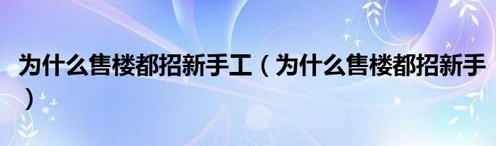 大家好,小晋来为大家解答以下问题,关于为什么售楼都招新手工,为什么售楼都招新手很多人还不知道,今天让我们一起来看看吧!