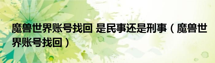 关于魔兽世界账号找回 是民事还是刑事,魔兽世界账号找回这个很多人还不知道,今天菲菲来为大家解答以上的问题,现在让我们一起来看看吧!