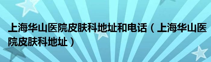 上海华山医院皮肤科地址和电话(上海华山医院皮肤科地址)
