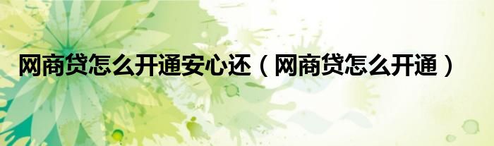 大家好,小晋来为大家解答以下问题,关于网商贷怎么开通安心还,网商贷怎么开通很多人还不知道,今天让我们一起来看看吧!